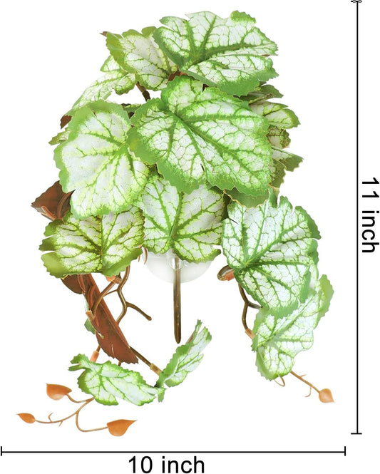 Reptile Plants, Plastic Simulation Leaf with Sucker Fish Tank Decoration(25Cm), Artificial Green Plant Fake Hanging Leaves Durable Aquarium Decor Ornaments (Light Green)