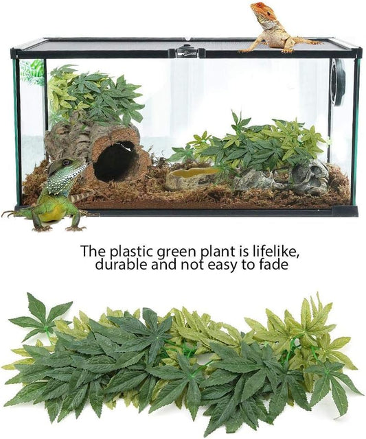 Reptile Vines,Reptiles Artificial Vine Plastic Fake Hanging Leaves Green Simulation Plant Reptile Terrarium Decor Aquarium Fish Tank Ornament with a Sucker(50Cm)
